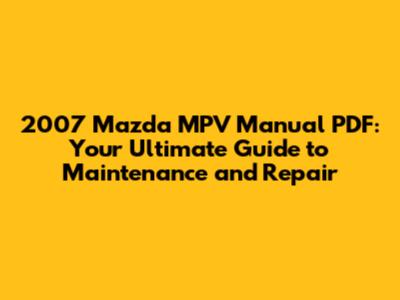 2007 Mazda MPV Manual PDF: Your Ultimate Guide