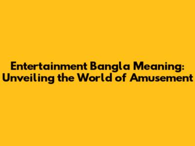 Entertainment Bangla Meaning: Unveiling The World Of Amusement