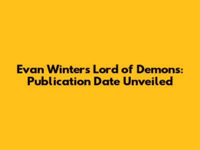 Evan Winter's Lord Of Demons: Publication Date Unveiled