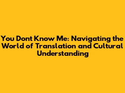 Translating "You Don't Know Me" into Different Languages: A Cross-Cultural Journey